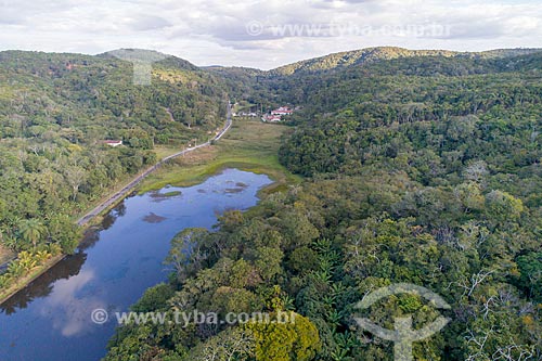 Foto feita com drone de lagoa na Área de Proteção Ambiental da Serra de Baturité - Guaramiranga - Ceará (CE) - Brasil
