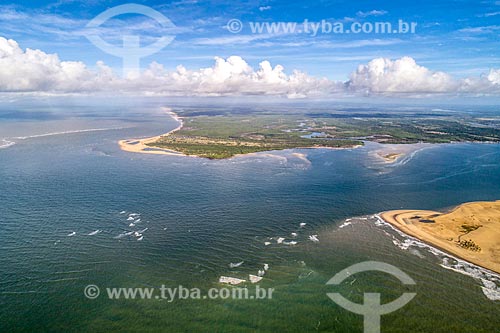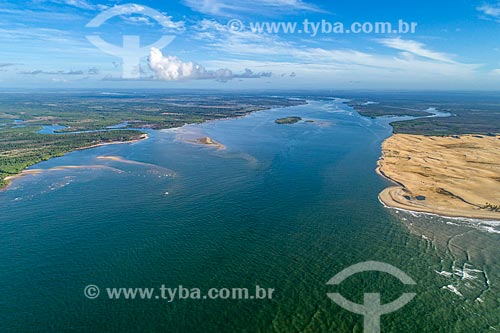 •  Foto feita com drone da foz do Rio São Francisco no Pontal do Peba com trecho da APA de Piaçabuçu à direita - divisa entre Sergipe e Alagoas  - Brejo Grande - Sergipe (SE) - Brasil