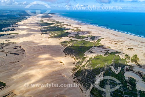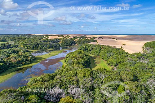 Foto feita com drone da APA de Piaçabuçu com a foz do Rio São Francisco ao fundo - Piaçabuçu - Alagoas (AL) - Brasil