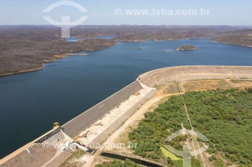 Foto feita com drone do reservatório Porcos - Projeto de Integração do Rio São Francisco com as bacias hidrográficas do Nordeste Setentrional - Brejo Santo - Ceará (CE) - Brasil