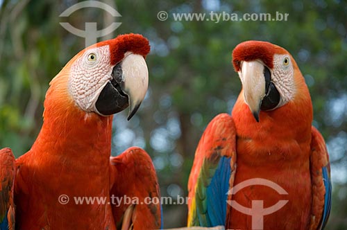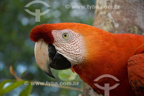 •  Assunto: Close-up de araracanga (Ara macao) no complexo turístico Amazon Ecopark Jungle Lodge  / Local:  Manaus - Amazonas (AM) - Brasil  / Data: 01/2006