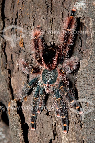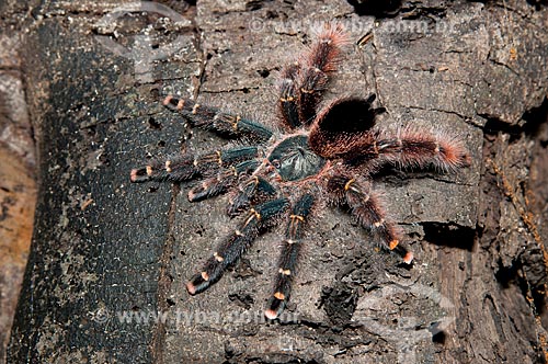 •  Assunto: Aranha-caranguejeira, ou tarântula num tronco de árvore da Floresta Amazônica de várzea da beira do lago Mamirauá  / Local:  Amazonas - AM - Brasil  / Data: 2007