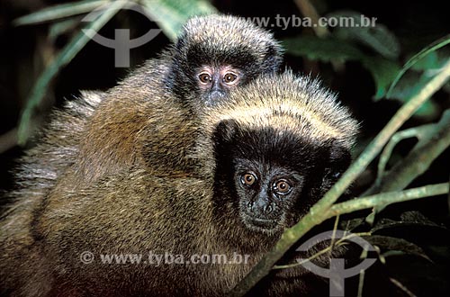 •  Assunto: Sauá (Callicebus nigrifrons) com filhote nas costas, na Mata Atlântica do Parque das Águas de São Lourenço  / Local:  São Lourenço - Minas Gerais (MG) - Brasil  / Data: 03/2006