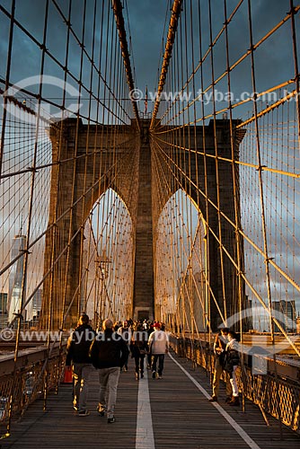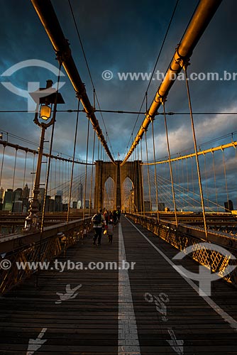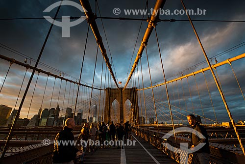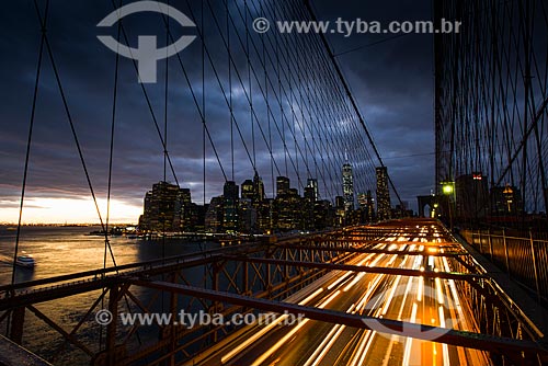 Tráfego na Ponte do Brooklyn durante o pôr do sol - Cidade de Nova Iorque - Nova Iorque - Estados Unidos