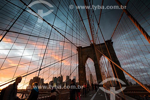 •  Tráfego na Ponte do Brooklyn durante o pôr do sol  - Cidade de Nova Iorque - Nova Iorque - Estados Unidos