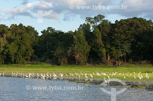 Assunto: Garças-brancas-grandes (Egretta alba) na beira do lago Mamirauá - Reserva de Desenvolvimento Sustentável Mamirauá / Local: Amazonas - AM - Brasil / Data: 2007