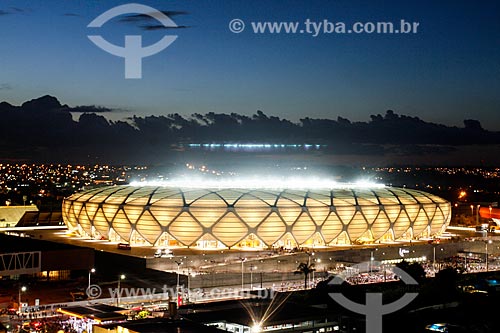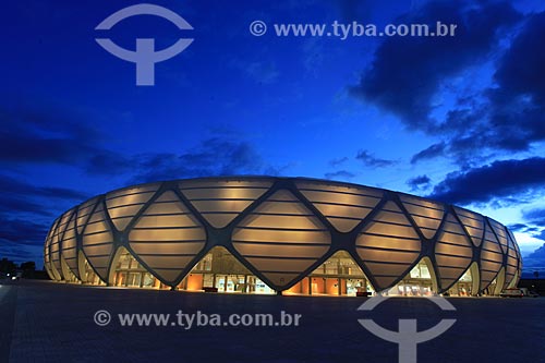 •  Assunto: Iluminação na fachada da Arena da Amazônia Vivaldo Lima (2014) / Local: Manaus - Amazonas (AM) - Brasil / Data: 03/2014