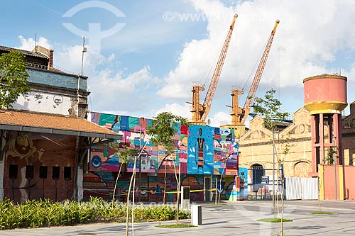 • Foto feita com drone dos armazéns do Cais da Gamboa - Porto do Rio de Janeiro - com o Mural Etnias na Orla Prefeito Luiz Paulo Conde (2016) - Rio de Janeiro - Rio de Janeiro (RJ) - Brasil