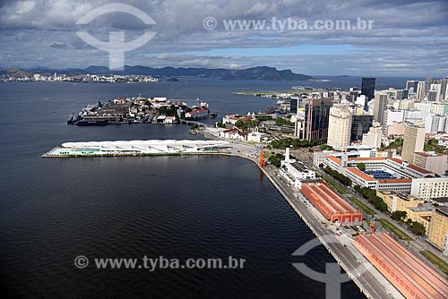 •  Foto aérea dos armazéns do Cais da Gamboa - Porto do Rio de Janeiro - com o Museu do Amanhã ao fundo  - Rio de Janeiro - Rio de Janeiro (RJ) - Brasil