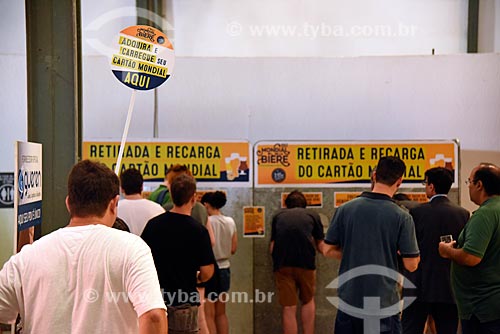 Fila em posto de retirada e recarga de cartão para consumo no Mondial de la Bière - festival internacional de cervejas - em Armazém do Cais da Gamboa - Rio de Janeiro - Rio de Janeiro (RJ) - Brasil