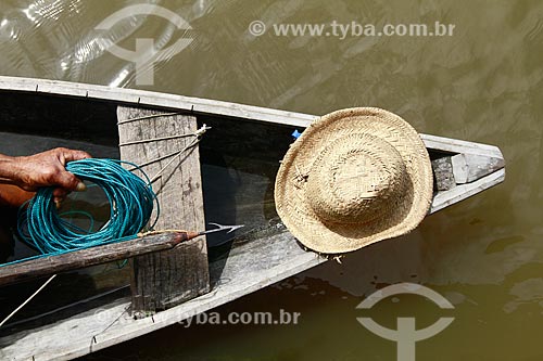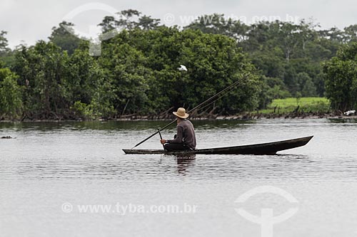 Pescador com arpão e zagaia durante a Pesca do Pirarucu (Arapaima gigas) - Reserva de Desenvolvimento Sustentável Piagaçu-Purus - Beruri - Amazonas (AM) - Brasil