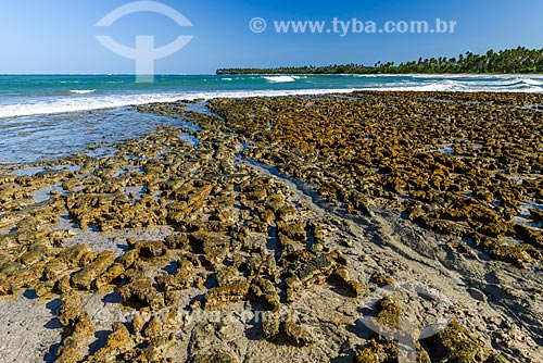 •  Vista de coral na orla da Praia de Bainema durante a maré baixa  - Cairu - Bahia (BA) - Brasil