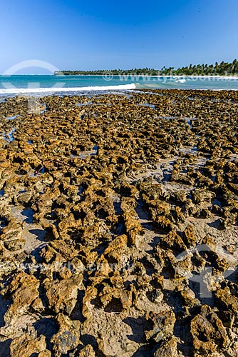 Vista de coral na orla da Praia de Bainema durante a maré baixa - Cairu - Bahia (BA) - Brasil