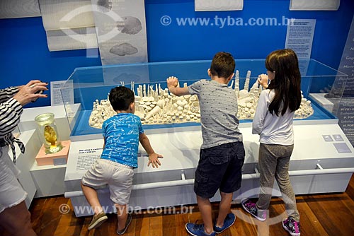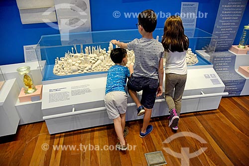 Crianças observando corais em exibição no Museu Nacional - antigo Paço de São Cristóvão - Rio de Janeiro - Rio de Janeiro (RJ) - Brasil