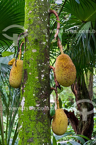 • Detalhe de jaca ainda na jaqueira (Artocarpus heterophyllus) no Parque Nacional da Tijuca - Rio de Janeiro - Rio de Janeiro (RJ) - Brasil