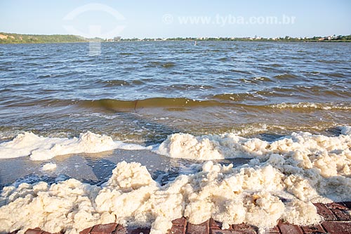 Detalhe de espuma na Lagoa da Barra de Maricá - também conhecida como Lagoa do Boqueirão - decorrente de assoreamento e movimentação orgânica - Maricá - Rio de Janeiro (RJ) - Brasil