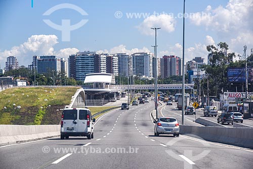 Tráfego na Avenida Armando Lombardi com a estação Jardim Oceânico do Metrô Rio e a Estação do BRT Transoeste - Terminal Jardim Oceânico - ao fundo - Rio de Janeiro - Rio de Janeiro (RJ) - Brasil