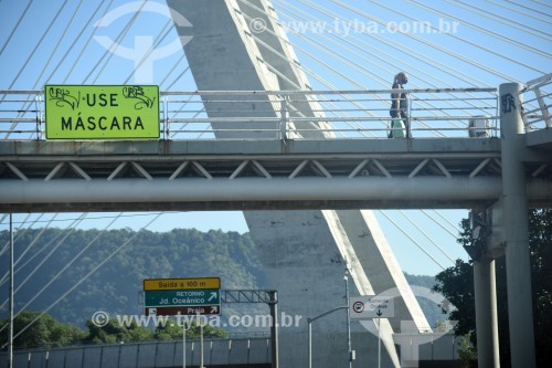 Passarela sobre a Avenida Armando Lombardi com placa incentivando a utilização de máscara - Rio de Janeiro - Rio de Janeiro (RJ) - Brasil