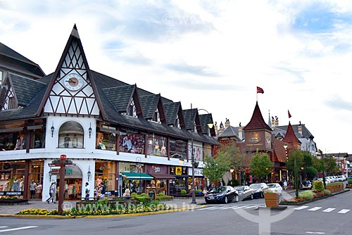Vista de prédios com estilo enxaimel na Avenida Borges de Medeiros - Gramado - Rio Grande do Sul (RS) - Brasil
