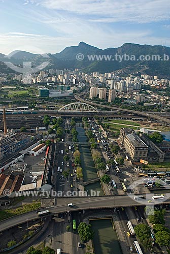 • Vista aérea Canal do Mangue em meio às pistas da Avenida Francisco Bicalho  - Rio de Janeiro - Rio de Janeiro (RJ) - Brasil