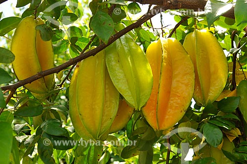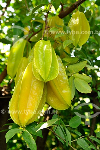 Detalhe de carambolas ainda na caramboleira (Averrhoa carambola) - Rio Claro - São Paulo (SP) - Brasil