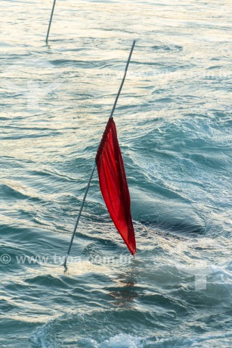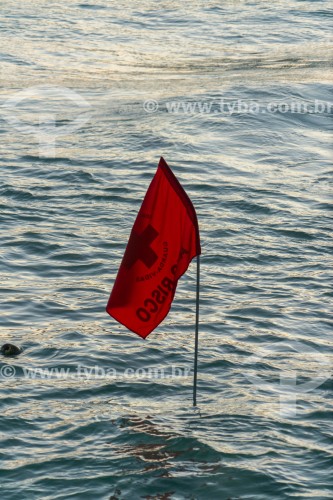 • Bandeira vermelha de sinalização de alto risco para o banho de mar nas areias da Praia do Diabo - Rio de Janeiro - Rio de Janeiro (RJ) - Brasil
