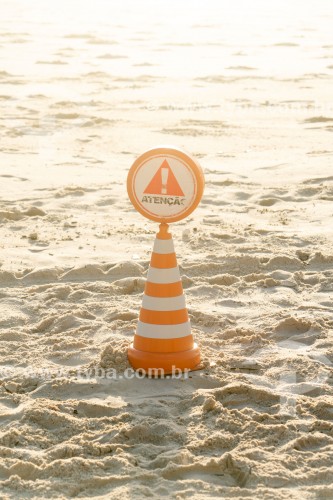 • Cone de sinalização de atenção na Praia de Copacabana - Rio de Janeiro - Rio de Janeiro (RJ) - Brasil