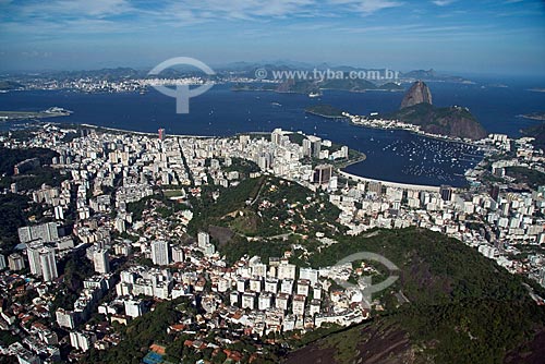Assunto: Vista aérea da Zona Sul do Rio - Bairros das Laranjeiras , Flamengo e Botafogo com a Baía de Guanabara e o Pão de Açúcar ao fundo / Local: Rio de Janeiro - RJ - Brasil / Data: 10/2010