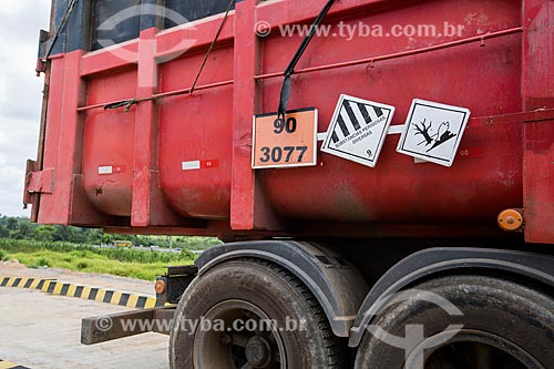 •  Detalhe de caminhão com placa de transporte de substâncias perigosas na Rodovia BR-324 - próximo ao município de São Sebastião do Passé  - São Sebastião do Passé - Bahia (BA) - Brasil