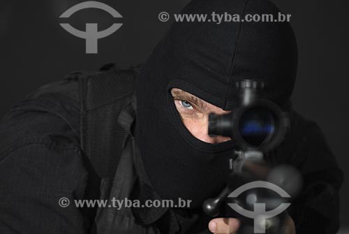 •  Policial do Batalhão de Operações Especiais (BOPE) durante o início da instalação da Unidade de Polícia Pacificadora (UPP) no conjunto de favelas do Complexo do Caju e Comunidade da Barreira do Vasco na zona norte do Rio de Janeiro    - Rio de Janeiro - Rio de Janeiro - Brasil