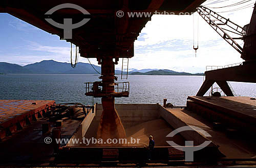 Carregamento de grãos de soja para exportação no porto de Santos - SP - Brasil - Santos - São Paulo - Brasil