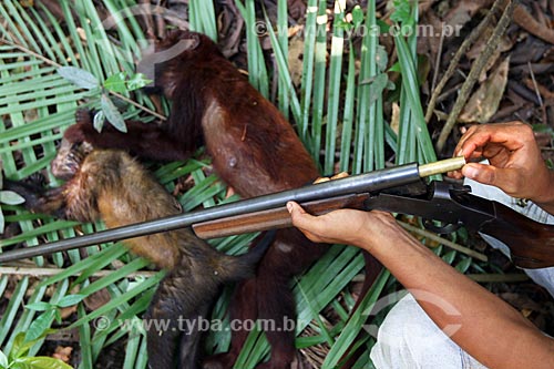 •  Detalhe de bugios (Alouatta caraya) - também conhecido como bugio-do-pantanal ou guariba - morto por caçadores ribeirinhos próximo à rodovia BR-174  - Amazonas (AM) - Brasil