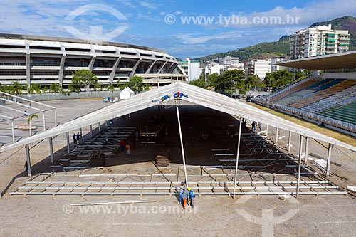 Reforma do Estádio Jornalista Mário Filho também conhecido como Maracanã para a Copa do Mundo de 2014 - Estádio de Atletismo Célio de Barros à esquerda e avenida Presidente Castelo Branco ao fundo - Rio de Janeiro - Rio de Janeiro - Brasil
