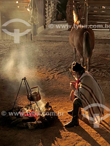 Gaúcho com indumentária típica e chimarrão - Canela - Rio Grande do Sul (RS) - Brasil