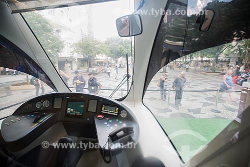 Cabine do veículo leve sobre trilhos em exposição na Cinelândia - Rio de Janeiro - Rio de Janeiro (RJ) - Brasil
