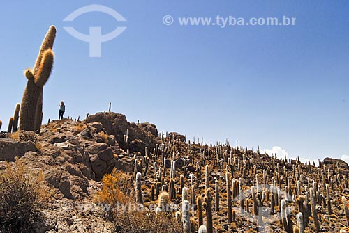 •  Assunto: Cactus Gigantes da Isla Incahuasi no meio do Salar de Uyunihttp: / Local: Bolívia - América do Sul / Data: 01/2011