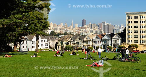 Assunto: Vista do gramado do Parque Alamo e casas (Painted Ladies) na Rua Steiner (Steiner Street) / Local: São Francisco - Califórnia - Estados Unidos da América - EUA / Data: 02/2013