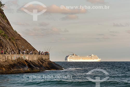 Pescadores no Mirante do Leme - também conhecido como Caminho dos Pescadores - à esquerda - com navio de cruzeiro ao fundo - Rio de Janeiro - Rio de Janeiro (RJ) - Brasil
