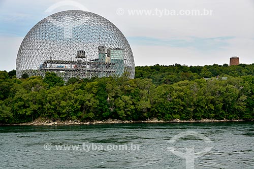 Vista do St Lawrence River (Rio São Lourenço ou Fleuve Saint-Laurent em Francês) com o Biosphere (Biosfera de Montreal ou Montreal Biosphère em Francês) - Montreal - Província de Quebec - Canadá
