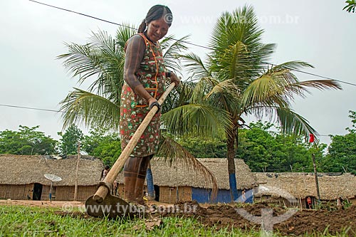 Índia capinando na Aldeia Moikarakô - Terra Indígena Kayapó - São Félix do Xingu - Pará (PA) - Brasil