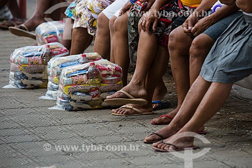 Distribuição de cestas básicas pelo Grupo Espírita União em Caridade Praça José Hilânio - também conhecida com Praça La Favorita - Juazeiro do Norte - Ceará (CE) - Brasil