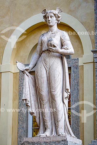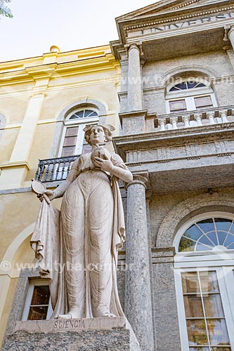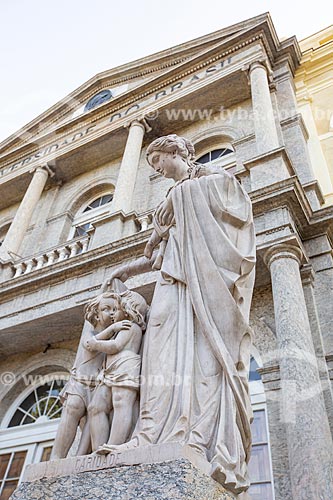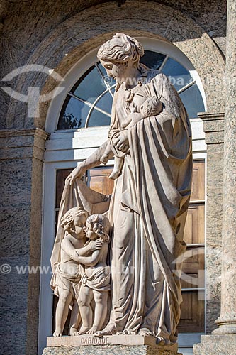 Detalhe da Estátua da Caridade em frente ao prédio do Campus Praia Vermelha da Universidade Federal do Rio de Janeiro - Rio de Janeiro - Rio de Janeiro (RJ) - Brasil