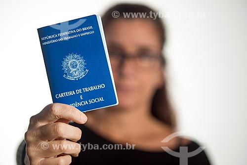 •  Detalhe de mulher segurando carteira de trabalho  - Rio de Janeiro - Rio de Janeiro (RJ) - Brasil