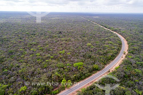 Foto feita com drone de trecho da Rodovia CE-060 na Floresta Nacional do Araripe-Apodi - Barbalha - Ceará (CE) - Brasil