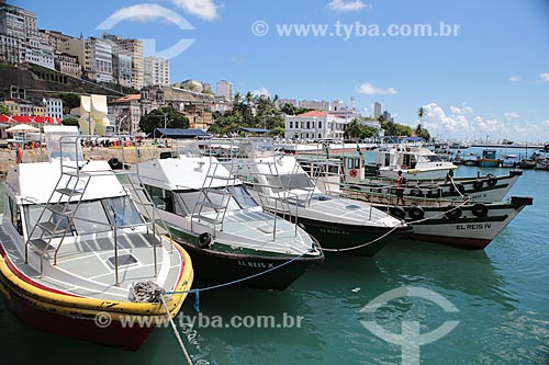 •  Lanchas atracadas no Terminal Turístico Náutico da Bahia com a cidade alta ao fundo  - Salvador - Bahia (BA) - Brasil