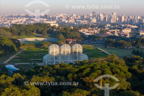 •  Foto aérea do Jardim Botânico de Curitiba (Jardim Botânico Francisca Maria Garfunkel Rischbieter) durante o pôr do sol  - Curitiba - Paraná (PR) - Brasil