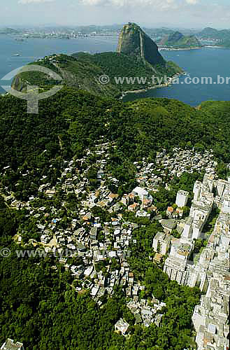 •  Vista aérea do bairro do Leme, favela do Chapéu Mangueira e Pão de Açúcar ao fundo - Rio de Janeiro - RJ - Brasil - Abril 2006  - Rio de Janeiro - Rio de Janeiro - Brasil