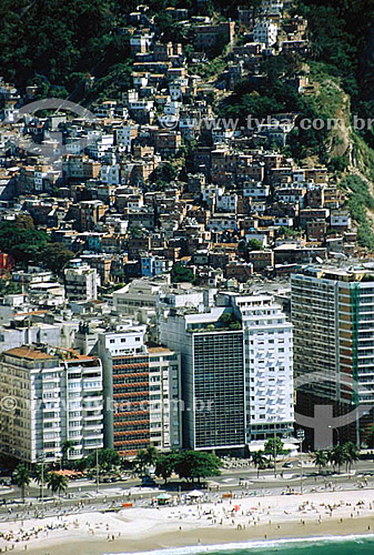 •  Assunto: Prédios da praia do Leme com a favela Chapéu Mangueira ao fundo  / Local:  Leme - Rio de Janeiro (RJ) - Brasil  / Data: Dezembro de 2009