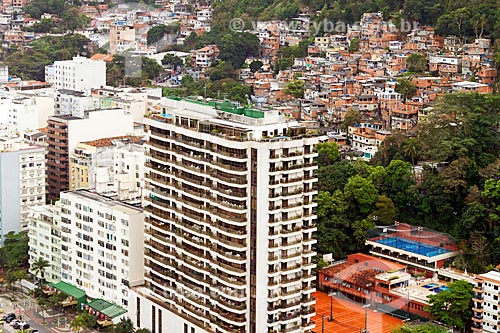 •  Prédio no bairro do leme com casas no Morro Chapéu Mangueira ao fundo  - Rio de Janeiro - Rio de Janeiro (RJ) - Brasil