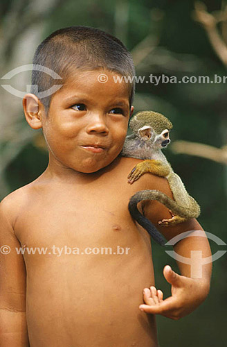 •  Menino com um Macaco de Cheiro (Saimiri sciureus) - Arlison da Silva Coelho (foto autorizada) - Município de Iranduba - AM - julho de 2001 - Brasil  - Iranduba - Amazonas - Brasil
